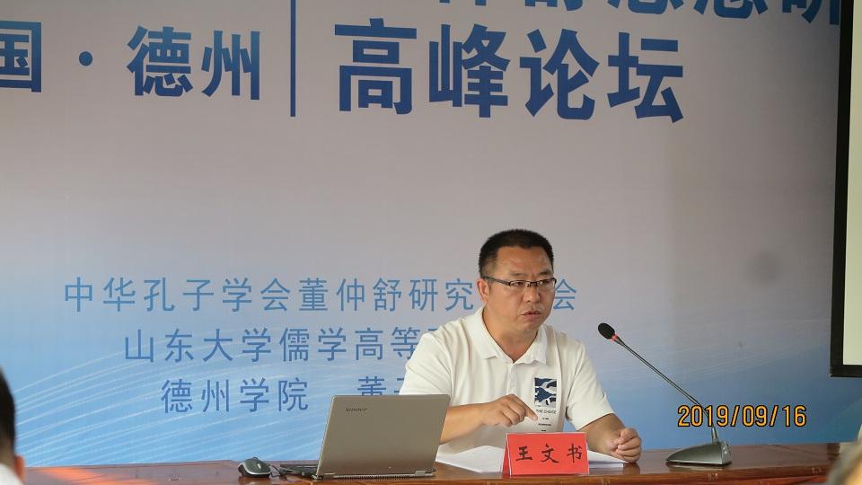 学术研讨会开幕式由德州学院原党委副书记、董子书院院长、中华孔子学会董仲舒研究委员会副会长季桂起教授主持。德州市委宣传部副部长史成志和中华孔子学会董仲舒研究委员会会长、上海交通大学余治平教授分别致辞。